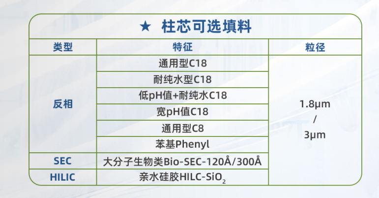 | 2.1? | 2.1*4.0 | 1.8μ 、3μ | 直連式 | UPLC | 316L不銹鋼 |