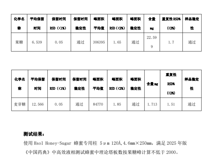 2025版《中國藥典》的更新,意味著對分析方法提出了更明確、更嚴謹?shù)囊?。恒譜生蜂蜜專用柱的研發(fā),正是以此為唯一的最高標準。