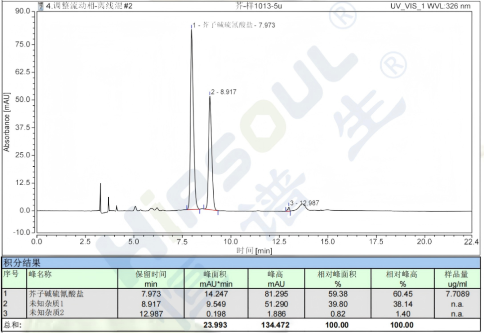 ?? 萊菔子中藥材芥子堿硫氰酸鹽分離:選用 USHD Phenyl 5μm, 120?,4.6mm×250mm 色譜柱,參照 2025 年版中國(guó)藥典,以乙腈 – 3% 冰醋酸溶液為流動(dòng)相,精準(zhǔn)分離出萊菔子中目標(biāo)成分,理論塔板數(shù)、分離度均滿足藥典要求,為中藥材檢測(cè)提供可靠方案。